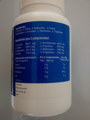 Envase de 120 cápsulas de 1 gramo.Es el mismo producto que MAP aminoácidos , se vende indistintamente con una u otra etiqueta.